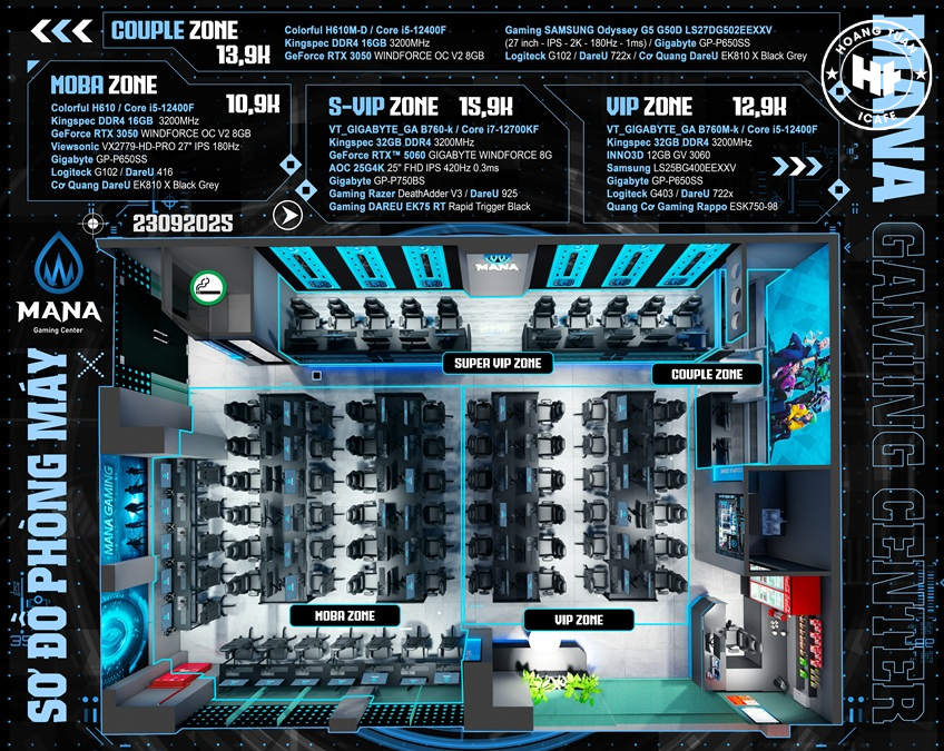 Trong bối cảnh nhu cầu giải trí và eSports ngày càng phát triển mạnh mẽ, các phòng game không chỉ còn là nơi để chơi game đơn thuần mà còn trở thành điểm hẹn, không gian kết nối và trải nghiệm công nghệ cao. Nằm tại 158 Nguyễn Sơn, Bồ Đề, Long Biên, Mana Gaming Center chính là minh chứng rõ ràng cho sự thay đổi này. Đây là phòng game thứ 3 được chủ đầu tư tin tưởng lựa chọn HoangTuanIcafe thi công và lắp đặt trọn gói – một lần nữa khẳng định uy tín và sự chuyên nghiệp trong lĩnh vực xây dựng cyber game cao cấp.