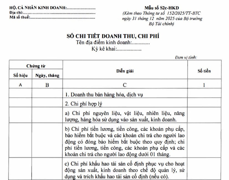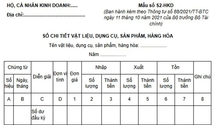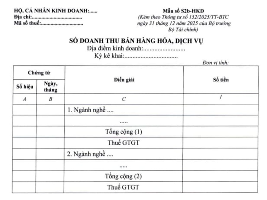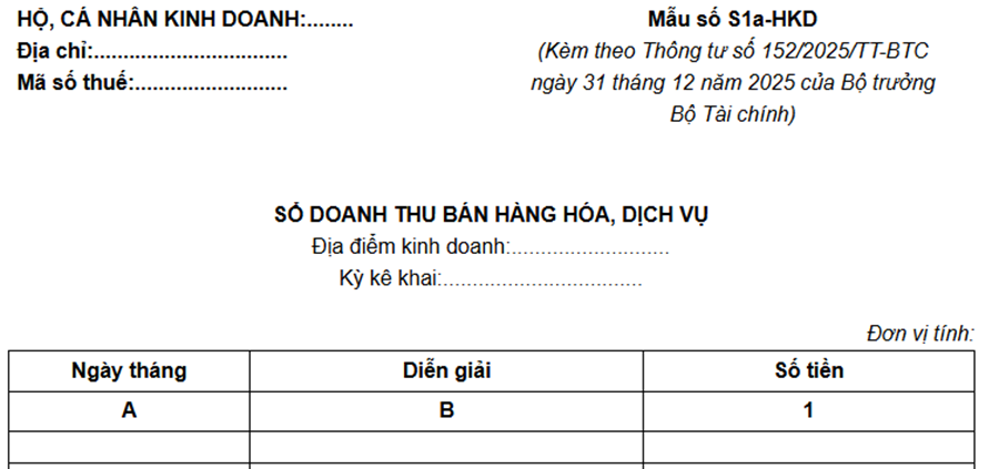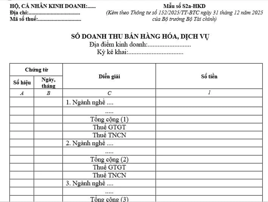 Sổ doanh thu bán hàng hóa, dịch vụ (mẫu S2a-HKD)
