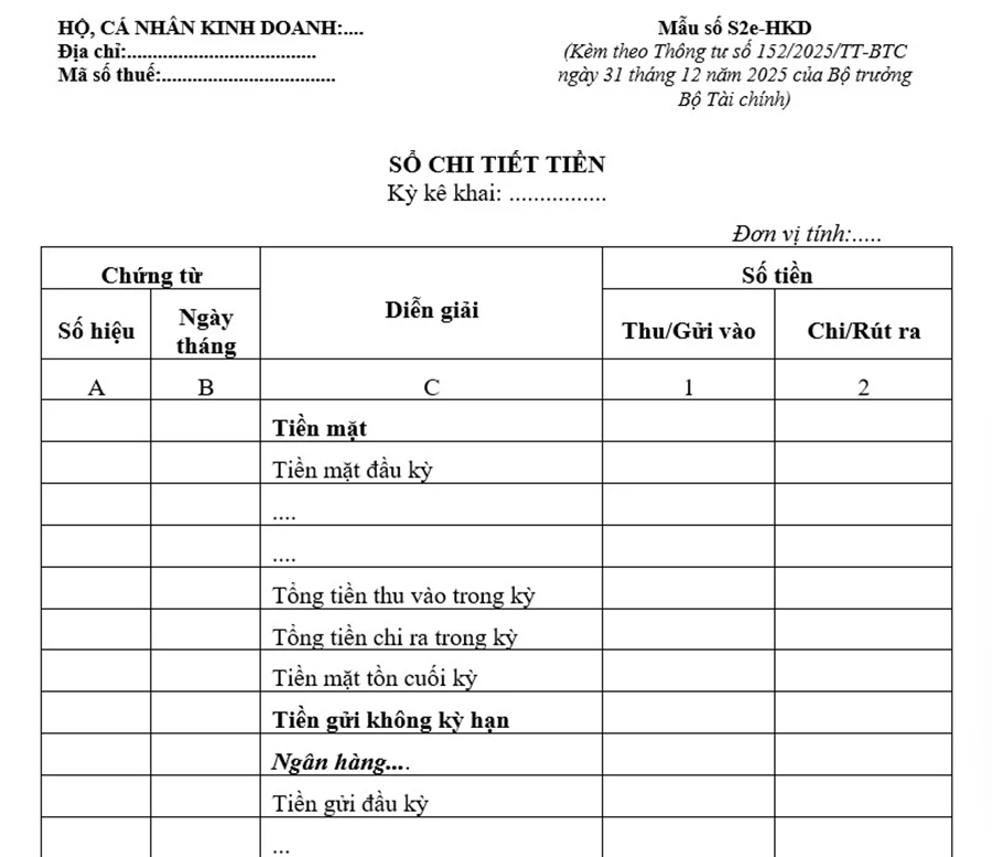 4. Sổ chi tiết tiền (tiền mặt, tiền gửi)